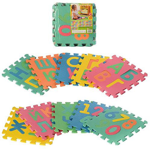 Детский коврик-пазл Мозаика M 2736 Алфавит - это десять деталей 29х29 сантиметров, которые соединяются все вместе по типу пазлов. В итоге из элементов мозаики М 2736 получается мягкий чудесный коврик, на котором можно сидеть во время игры. Но и это не всё. На каждой части есть изображения буковок и цифр, а это значит, что во время игры Ваш малыш сможет очень легко запомнить их. В комплекте 10 элементов одинакового размера.