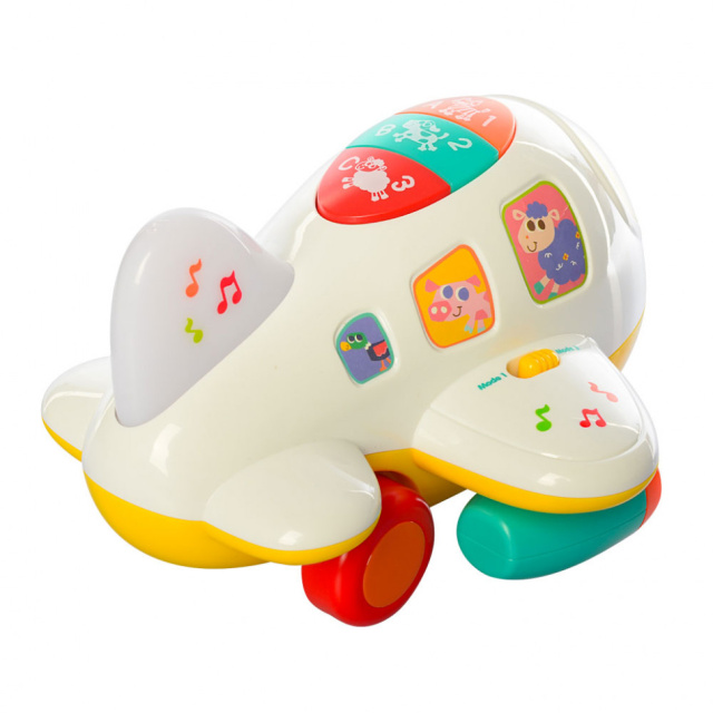 Детская игрушка самолет 6103, рекомендованная для самых маленьких деток старше 12-ти месяцев, развивает воображение, внимательность, цветовое и слуховое восприятие, мотивирует кроху к получению новых знаний. Компактный самолетик выполнен с очаровательной, дружелюбной мордашкой, которая вызывает умиление и самые радостные улыбки. Игрушка отличается прочным корпусом, изготовленным из безвредного и гипоаллергенного пластика, который не вызовет у Вашего непоседы неприятных раздражений. Самолетик размером 21 х 19 х 12 см функционирует при помощи стандартных батареек типа АА, которые необходимо покупать дополнительно. Приятное, мелодичное звучание, обилие полезных режимов для обучающих игр, оригинальный, современный дизайн – идеально подобранный функционал и качественное изготовление порадуют и детишек, и взрослых.