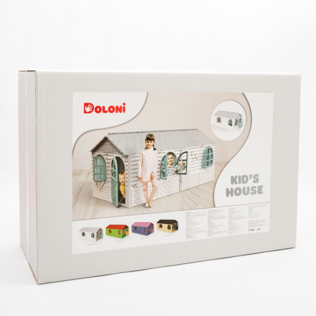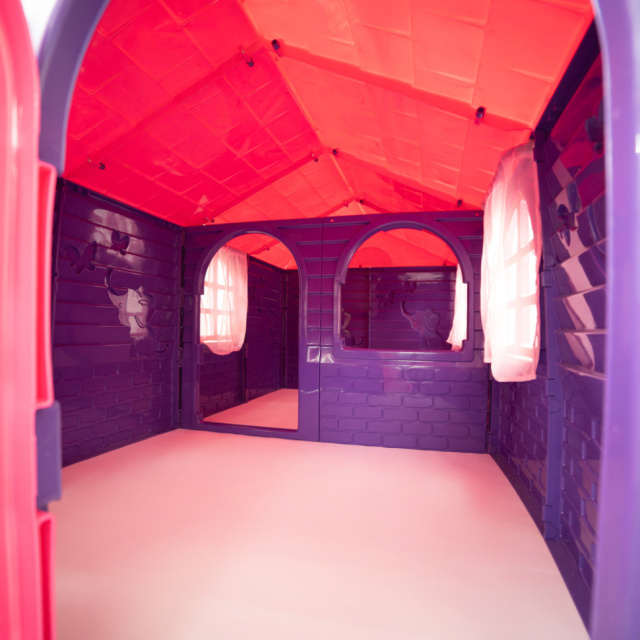 Домик игровой со шторками Фламинго, упаковка - коробка. Размеры домика 256*129*120 см. Размер упаковки: 130*55*88 см. Материал - пластик. Подходит для установки как в помещении, так и на улице.