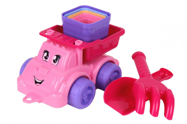 Песочный набор это универсальная и интересная игрушка - можно играть самосвалом дома или перевозить песочек в песочнице, строить пирамидку или формировать пасочки. С такими играми малыш изучает формы, цвета, сравнивает размеры и делает первые шаги в счете. Изображенные глазок и улыбка на самосвале, нанесенные методом штампопечати, добавляют игрушке эмоции и принесут детям радость.