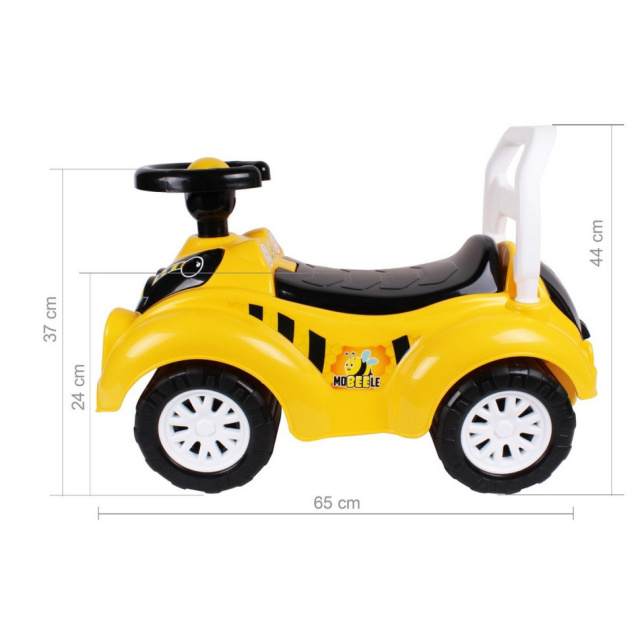 Функционал игрушечного автомобиля как у настоящего: под капотом можно заглянуть в моторный отсек для ремонта. И для покупок тоже найдется место — есть багажник и большой отсек под сиденьем. Удобная спинка поддерживает ребенка во время катания. Имитация выхлопной трубы обеспечивает устойчивость автомобиля от опрокидывания. На больших крепких колесах автомобиль имеет высокую проходимость на различных дорожных покрытиях.