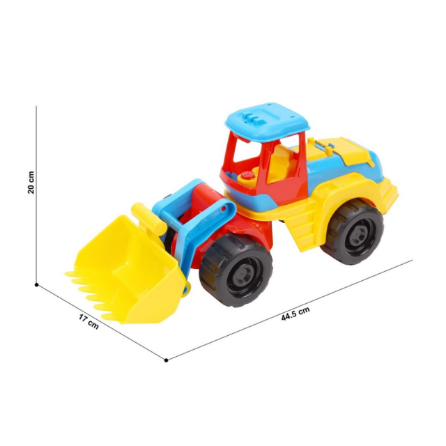 Новый "Трактор" - это мощная строительная техника для работы в карьере, загрузки самосвала гравием, песком и другими строительными материалами. С ним можно придумать множество сюжетно-ролевых игр дома и на дворе. Трактор пригодится для строительства дорог, мостов и автостоянок. С трактором малыш почувствует себя настоящим строителем.