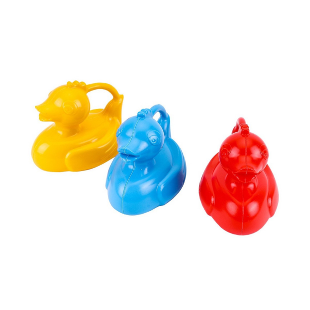 Игрушки изготовлены методом выдува, они легкие и хорошо держатся на воде. Сверху уточки имеют ручку, за которую удобно держать и пускать на воду.