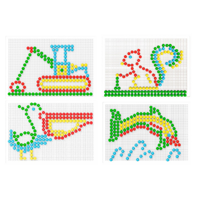 Мозаика состоит из удобного пенала-саквояжа с двумя фиксаторами. Размер фишки - 9 мм. Четыре цвета - 340 фишек. Для детей от 5-ти лет.