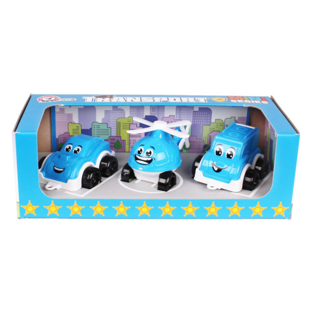 В наборе собраны автомобиль, микроавтобус и вертолет. Такая команда машинок всегда придет на помощь игрушечным друзьям. Известно, что сюжетно-ролевые игры развивают у детей фантазию, воображение и мышление. Маленькие машинки удобно брать с собой на прогулку или играть дома.