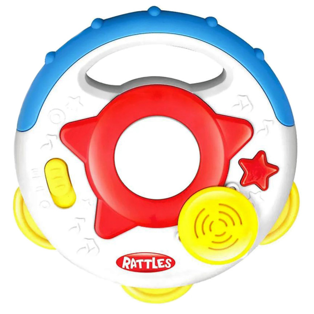 Музыкальная игрушка-погремушка "Бубен" со специальными музыкальными кнопочками, которые очень приятно нажимать маленькими пальчиками. В зависимости