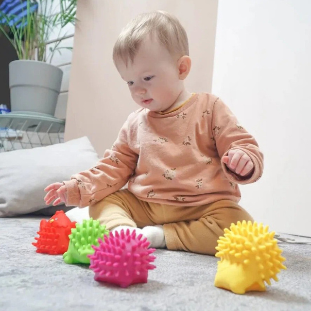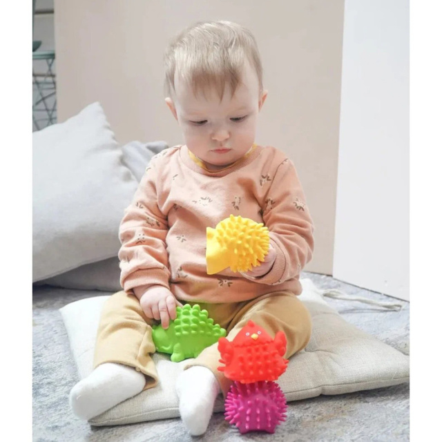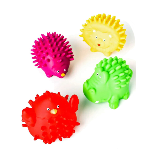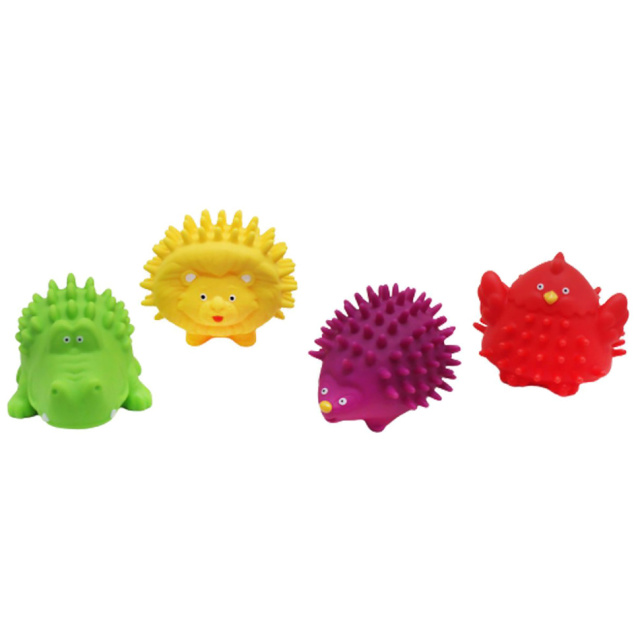 В комплекте набора 4 пищалки с мягкими шипами в форме зверушек.