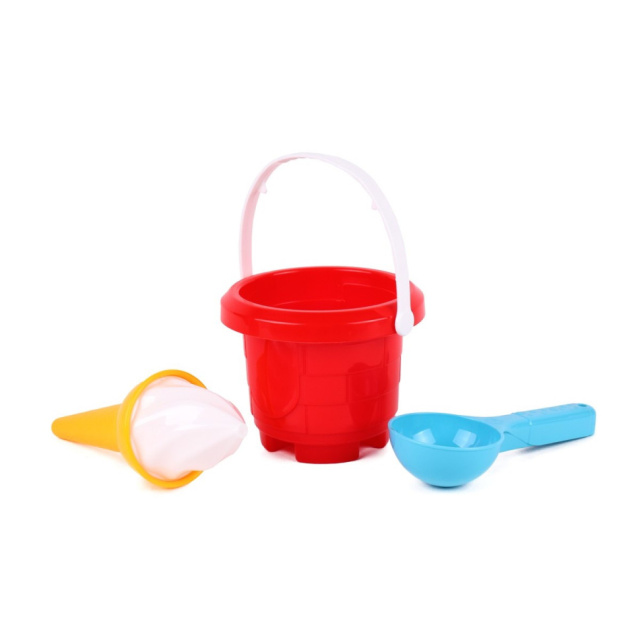 Новый «Набор для игры с песком» в круглом ведерке - отличный выбор для Ваших малышей. Яркие цвета, оригинальные формы и интересная комплектация не оставят равнодушными детей и родителей. В наборе круглое ведерко, дизайн которого имитирует кладку средневековой башни, интересная формочка для песка в виде рожка мороженого с верхушкой и ложечка. Ведерко можно использовать как формочку для песка и построить настоящие большие башни. Ручка ведерка мягкая и эластичная, не содержит мелких деталей, поэтому игрушка является безопасной для детей возрастом от 1-го года. Размер ведра специально рассчитан для удобного использования маленькими детьми. Такая игрушка не займет много места в коляске или сумке, ее всегда можно взять с собой на прогулку.