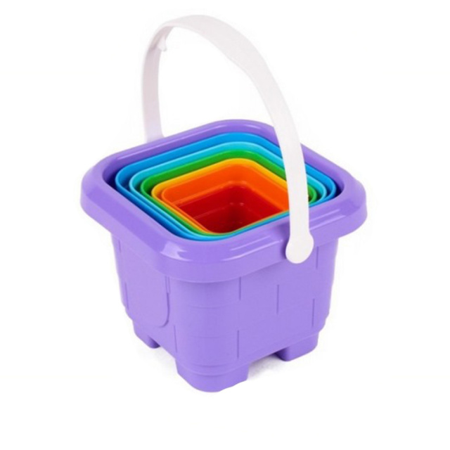 Яркая пирамидка в цветах радуги. Особенностью игрушки является то, что все формочки можно собрать в квадратное ведерко с ручкой. Такую игрушку удобно переносить, брать с собой на прогулку, в песочницу или детский сад.