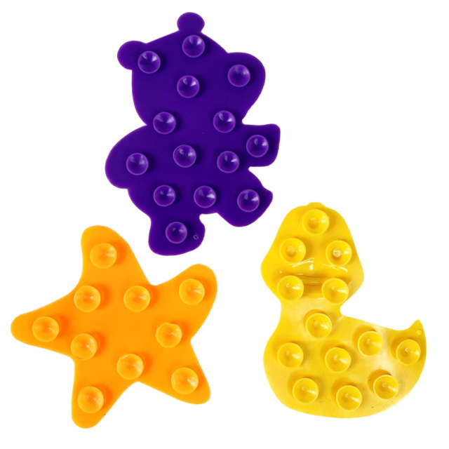 Мини-коврики для ванны ­– Эти мини-коврики способствуют развитию моторики, помогают ребёнку изучить цвета и представителей животного мира. Закрепив их на кафеле, либо же на самой ванной ребенок с интересом будет их рассматривать и сконцентрирует на них свое внимание. Развивать мышление, творчество, ловкость ребенок сможет если будет самостоятельно крепить присоски к поверхности. ПРЕИМУЩЕСТВА: – Крупные присоски, благодаря которым крепится мини-коврик; – Мягкие, приятный на ощупь; – Эластичные.; – Яркие цвета и прикольные животные; – Защищает от скольжения и падения, если прикрепить на дно ванны. ХАРАКТЕРИСТИКИ: – Материал - качественная резина; – В комплекте 3 штуки. РЕКОМЕНДОВАНО ДЛЯ ДЕТЕЙ ОТ 3Х МЕСЯЦЕВ!