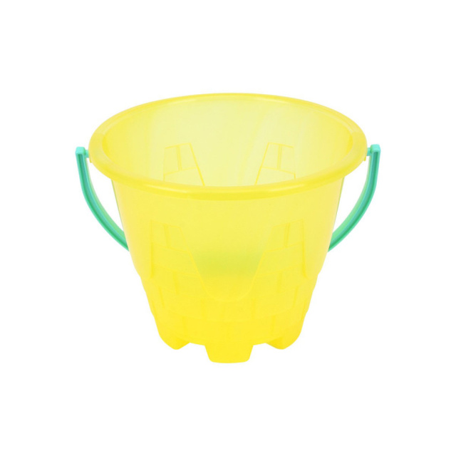 Ведерка в разных ярких цветах: зеленом, голубом, розовом, желтом. Полупрозрачные с блестками по всей форме, исключение – ведерко желтого цвета. Игрушка изготовлена из качественного и безопасного пластика без запаха.
